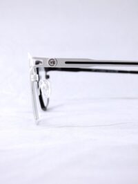 メガネのフロント部分が大胆に純白と漆黒に色分けられている遊び心満載のメタルフレーム。
