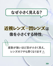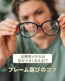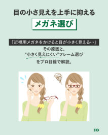 近視用メガネをかけると目が小さく見えるのが嫌というご意見を時折耳にします。 今回はメガネを選ぶときのコツを少しだけご紹介します。