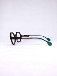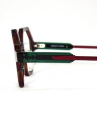 テンプルは軸に近いほうにクリアグリーンのセル生地を使用しフロント部分と同じメタリックレッドのメタルパーツで印象を引き締めています。