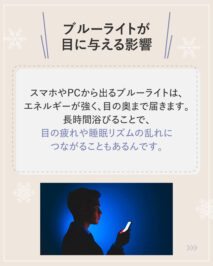 長時間浴びることで、目の疲れや睡眠リズムの乱れにつながることもあるんです。