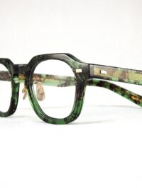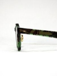 クリアグリーンのセル生地に黒の柄が映えるメガネ