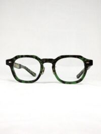 厚セルがカッコイイ スクエアタイプ。 ブラックの杉の葉を閉じ込めたようなクリアグリーンのセル生地が渋いデザインです。