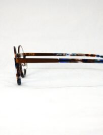 今回ご紹介するBD722 Col.35は赤みの強いブロンズカラーののオーバル型メタルフレームに、ブラウン・ブルー・クリアの混ざりあったセル生地をセットしたアンダーリムタイプ。