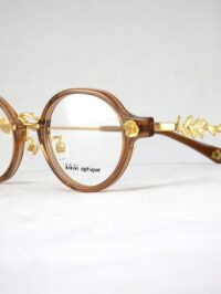 ブリッジの枝、目尻のアネモネ、テンプルの葉と流れるような統一感がとても印象的なメガネ ki ki ki optique Mozu Balcony KOP-012BR