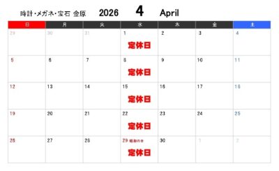 時計・メガネ・宝石 金原 2026年4月の定休日