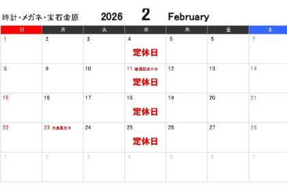 いつもご来店ありがとうございます。 時計・メガネ・宝石 金原とメガネのアイプラザの2025年11月定休 …続きを読む >