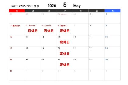 いつもご来店ありがとうございます。 2025年10月の「時計・メガネ・宝石 金原」と「メガネのアイプラザ」の定休日を …続きを読む >